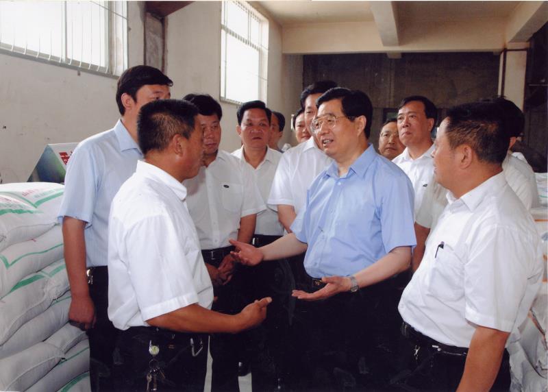 中共中央總書記、******主席、中央軍委主席胡錦濤在省、市、縣級領導的陪同下考察五陽公司